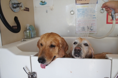 パパさん、wan娘ちゃんを初洗いですか~?(笑)