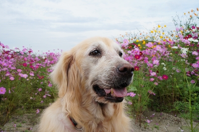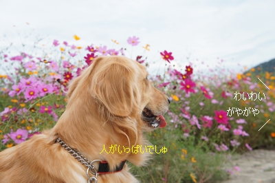 コスモスに2wansちゃん、とてもお似合い。とってもキレイです。
