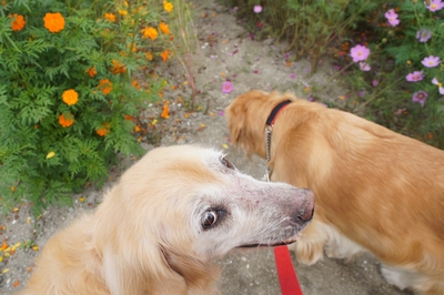 そうだよ!そうだよ!来年もコスモス見に来なくちゃ‼‼温かいお気持ちに癒しのエネルギーを感じました。いっぱいの人に撫でてもらって、本当に輝くばかりの笑顔の2人…