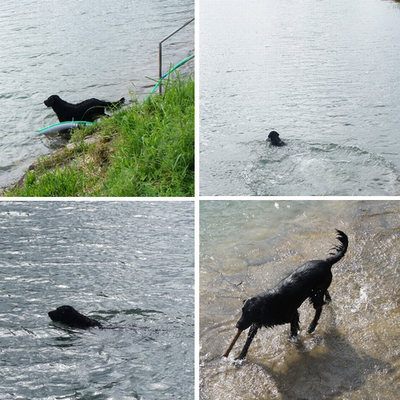 池で、ダイブしてるワンちゃん発見