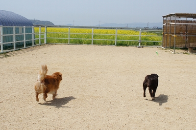 ハイパーコンビの菜の花畑、メリッサちゃんは相変わらず元気がいいようですね。