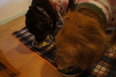 食堂へは、ルナ&シェラとご一緒しましたよ!